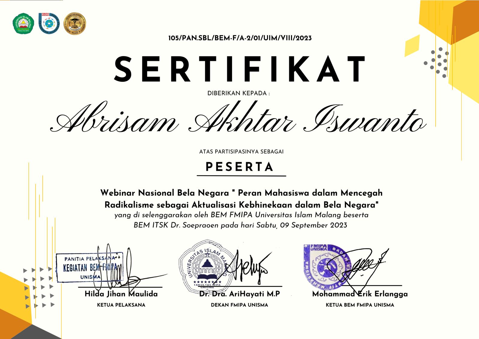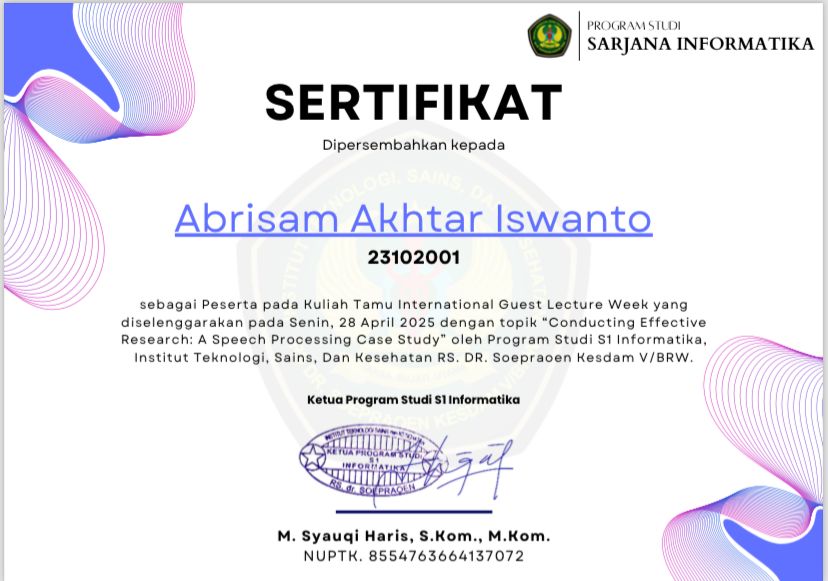 Nama saya Abrisam Akhtar Iswanto, mahasiswa IT Kesehatan di ITSK RS. dr. Soepraoen Malang. Saya sedang mengejar passion saya di dunia Web Development, dengan semangat untuk terus belajar dan berkembang. Bagi saya, membuat website bukan hanya soal tampilan tetapi soal menciptakan solusi digital yang berguna.